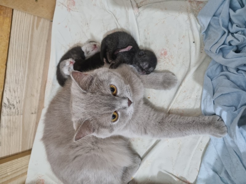 Ponúkam na predaj britské čistokrvné mačiatka bez PP. Mama farba lilavá a otec šedý mramorový. Mačiatka sú netradične sfarbené - 2 mačičky (šedá mramorová, tmavá mramorová) a 3 kocúrikovia (tmavý, tmavý jemne mramorový a bledá tvárička s tmavou ofinkou :-).