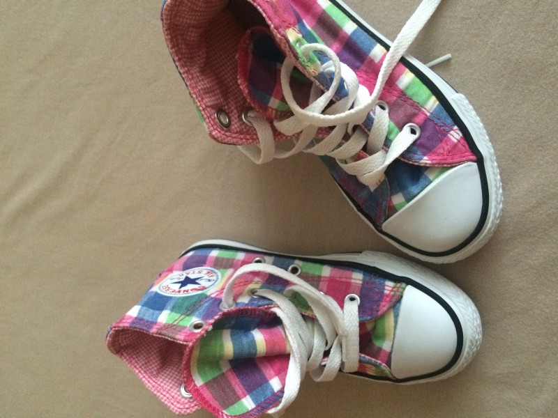 Dievčenská rúžová vestička Hallo Kitty značka HaM za 8 eur(veľkosť 116 pre dievčatá 6-8 rokov), značkové kárované dievčenské Converse topánky za 20 eur(veľkosť 28) a trekové topánky La Sportiva za 30 eur( veľkosť 30).Všetky veci používané minimálne až vôbec. poštovné nieje v cene. Možnosť predania v Žiline.