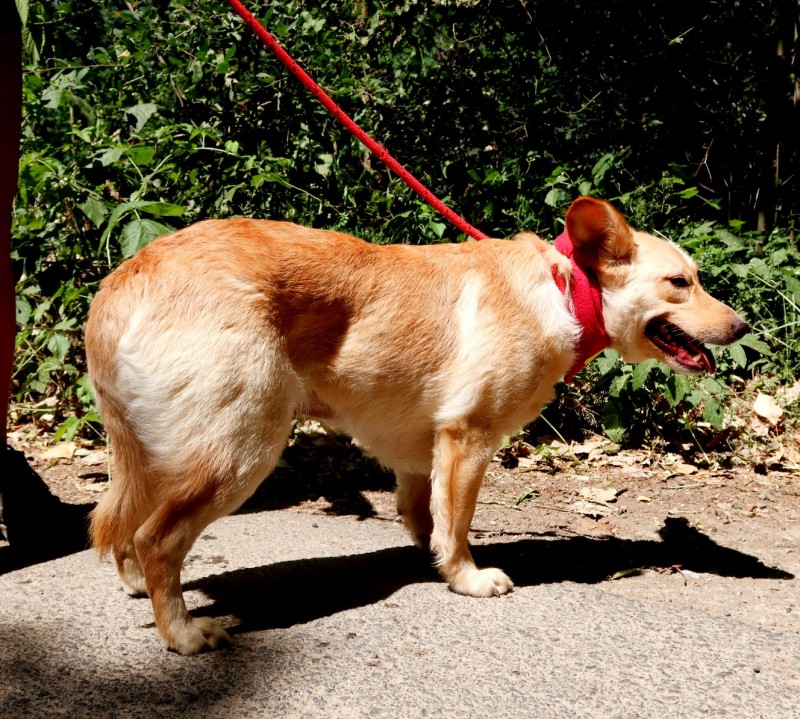 Mala špagát zarezaný do krku, potrebovala veterinárne ošetrenie. Zo začiatku bola bojazlivá, časom si zvykla na kontakt s ľuďmi. Na novom mieste sa môže zo začiatku znova trochu báť. Priateľská, milá a vďačná. Je vhodná do rodiny s deťmi, k začiatočníkom aj k aktívnym seniorom. Kamaráti sa so psíkmi aj fenkami. Je stredne aktívna, vhodná do bytu aj do rodinného domu.