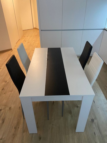 Predám jedálenský stôl ,rozmery 150x80 plus 4 stoličky,kupované pred 10mes., na povrchu stola z kraja su mierne bubliny, prosím s odvozom