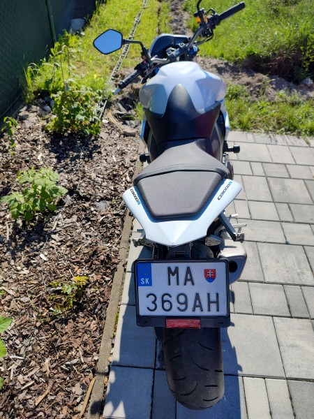 Predám motorku Honda CB1000R, rok výroby 2008. Počet najazdených km: 42769. Druhý majiteľ. TK platná do 11/2022. Motorka nebola búraná, je plne pojazdná, vo výbornom stave. Má 3 viditeľné poškodenia (1. na výfuku sú drobné škrabance v dôsledku pádu zo stojana na parkovisku – víchrica; 2. zadný plast je trošku „dokopaný“ od nasadania spolujazdca; 3. pravá smerovka je odtrhnutá – neopatrná manipulácia s plachtou pri odkrývaní motorky) – viď foto. Dôvod predaja: 4 roky nevyužívaná. K motorke je možnosť dokúpiť aj používanú pánsku koženú kombinézu vrátane prilby, rukavíc a čižiem (veľkosť M/L, 41-viď foto) a dámske goratexové oblečenie veľkosti S (vrátane prilby, rukavíc a čižiem veľkosti 35). Cena oblečenia dohodou. Cena motorky: 4900 eur. V prípade vážneho záujmu volať 0907 293 413.