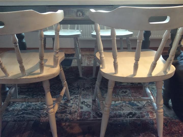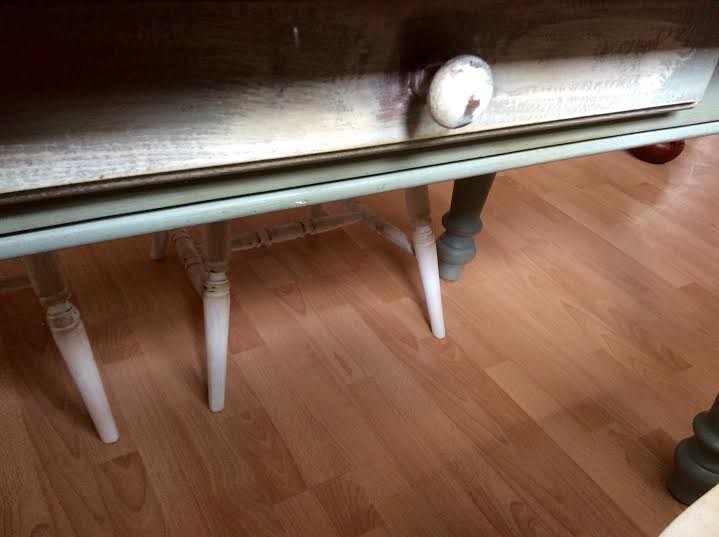 Nádherný Vintage masívny jedálenský stôl so šuflíkom & 4 stolicky " Adrienne"je zoskladaný tak, aby vytvoril tento štýlový a jedinečný jedálenský set, materiál: drevo, farba stola Duck Egg Blue by Annie Sloan, stlicky Old White by Annie Sloan, technika maľba, jemna patina, dvojfázové biele voskovanie, jednofázové "modelovanie" čiernym voskom a patinou do tzv. "Used looku", ktory je pre Vintage tak charakteristicky. Rozmery: 148x77x78/dlzka, šírka, výška/