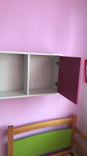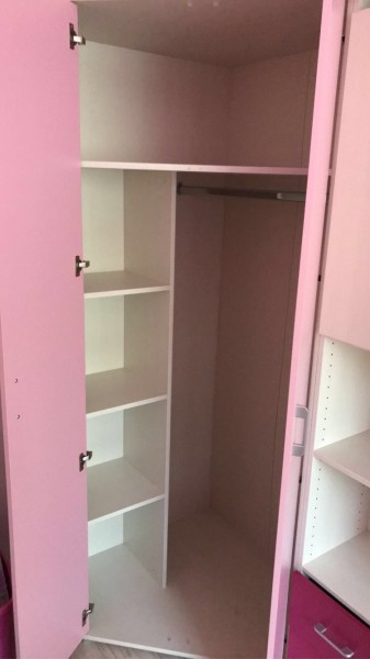 Predám nábytok do dievčenskej detskej izby(rohová skriňa, poličky, písací stôl a skrinka nad posteľ)