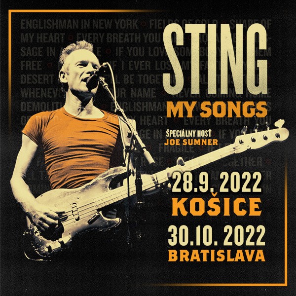 17-násobný držiteľ ceny Grammy odohrá skladby ako „Fields of Gold“, „Shape of My Heart“,„Englishman in New York“či „Every Breath You Take“a veľa ďalších, ktoré napísal počas svojej plodnej kariéry, či už so skupinou The Police, alebo ako sólový umelec. Tentokrát odohrá koncert MY SONGS v košickej Steel Aréne 28.9.2022