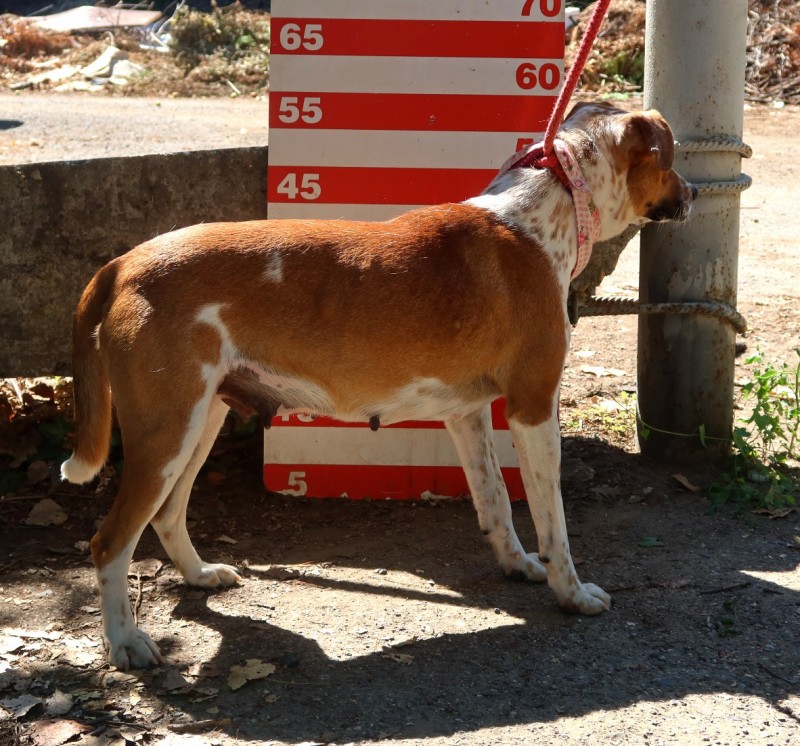 Bola vyhodená medzi dvoma dedinami. V minulosti nezažila nič dobré, keď k nám prišla bála sa a ukrývala sa v búdke. Pri manipulácii zo strachu hrýzla. Časom sa už osmelila, teší sa ľuďom ktorých pozná, ale pri stresovej situácii môže zle zareagovať, keď si spomenie na niečo z minulosti, preto ju neodporúčame do rodiny deťmi. Keď k nám prišla bola veľmi vychudnutá, doteraz si jedlo ochraňuje pred ostatnými psami a z toho dôvodu vznikajú medzi nimi konflikty. Preto ju odporúčame do rodiny bez iných psíkov. Napriek traume ktorú zažila si zaslúži šancu a dúfa, že si ju nájde tá správna rodina. Potrebuje citlivý prístup, človeka so skúsenosťami, ktorý ju bude vedieť usmerniť.