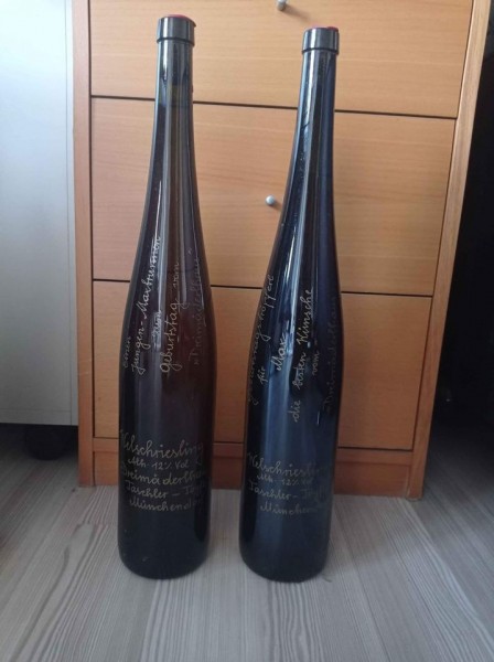 Predám dve kvalitné rakúske biele vína (Münchendorf) v ozdobných fľašiach