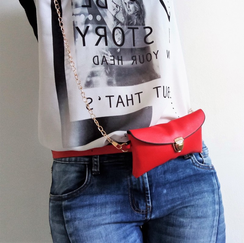 Úplne nová krásna červená zo zlatým doplnkom kabelka / ľadvinky / kryt - obal na mobilný telefón