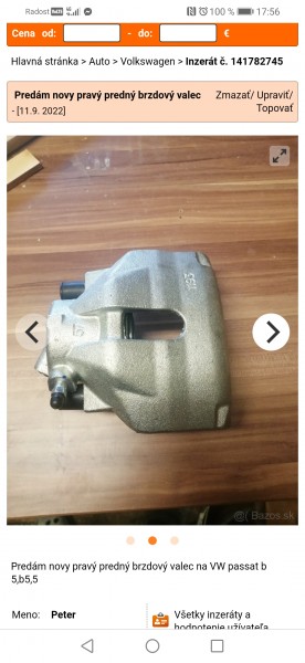 Predám novy predný brzdový valec na VW passat b5, b5.5 cena30€