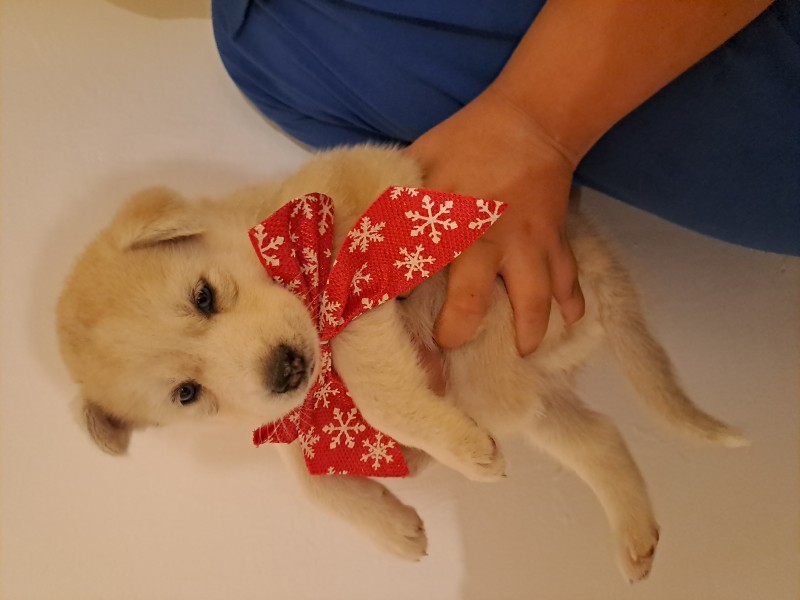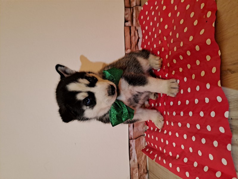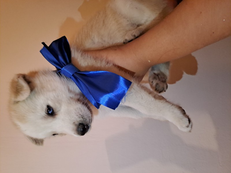 Zelenou a modrou mašľou sú psíky ostatné sú fenky. Všetky majú nádherné modré oči. Volať po 17:00