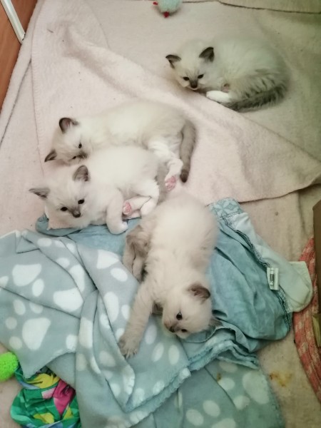 Predám Ragdoll mačiatka Bez PP. 3 kocúrikovia a 1 mačička. Pri odberu budú zaočkované aj s veterinárnym preukazom a odčervené. Je možnosť ich prísť aj pozrieť. Možný odber 30.9.V prípade záujmu mi prosím volajte.