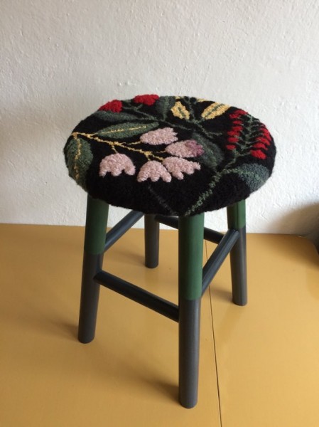 Ručne prerábaná stolička...koberec ručne robený v štýle punch needle
