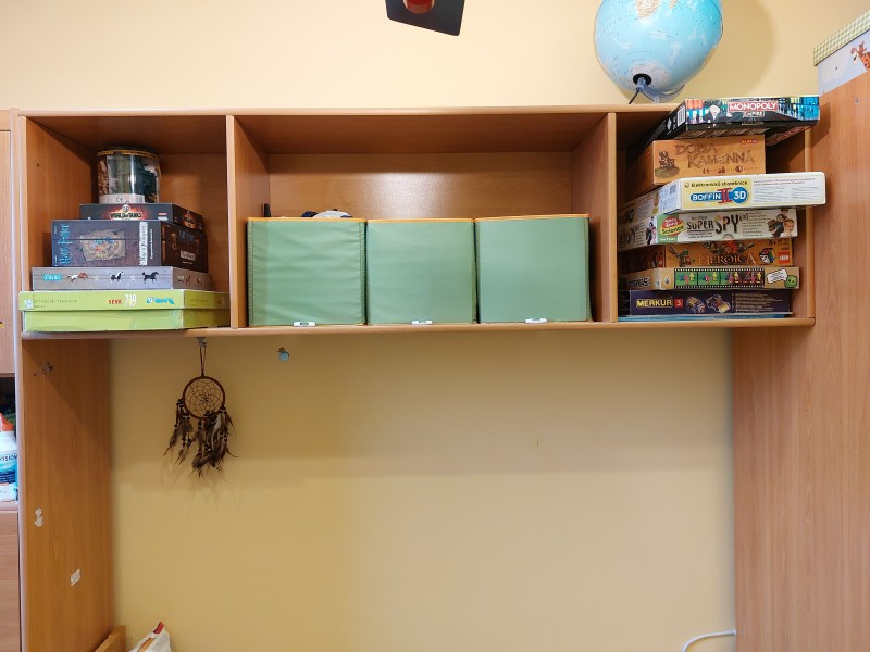 Farba nábytku je jelša okrem písacieho stola, ktorý je vo farbe buk a detskej postele z IKEA (dávam vrátane plastových krabíc pod posteľou).
