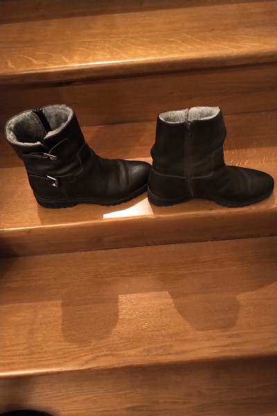 Predám dámske čižmy z tmavohnedej kože s pevnou a bezpečnou podrážkou typu Vibram. Čižmy sú vo vnútri zateplené pravou kožušinou. Veľkosť č. 41. Dĺžka podrážky od konca päty po špičku je 28 cm, výška 22 cm. Cena 7,- EUR. Osobný odber v Košiciach, alebo poštou na dobierku.