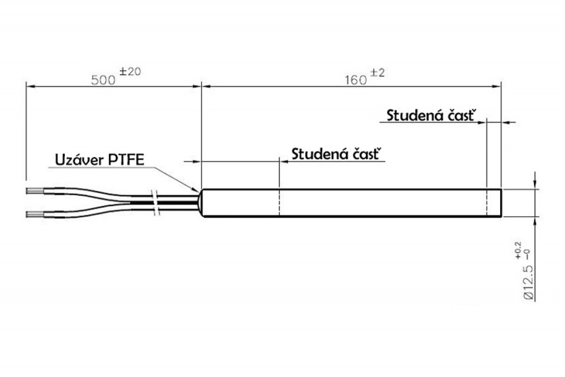 Priemer 12,5 mm; celková dĺžka 160 mm; 350 wattov