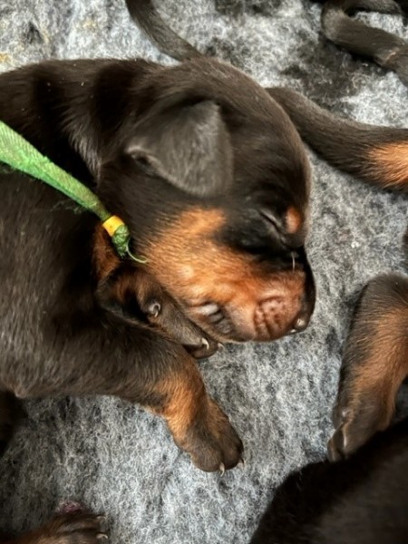 Ponúkame na predaj šteniatka s PP (doberman) narodené 16.4.2023 so spojenia pracovne aj výstavne vedených rodičoch (otec okrem iného český šampión 2022, 2023), predpoklady pre chov, výcvik, ale aj ako spoločníci do rodín. Do nových rodín pôjdu 06-07/2023 so základnou výbavičkou, čipované, očkované, samozrejmosťou je chovateľské podpora a pomoc. Viac info na www.vitaamoris.sk alebo na FB Vita Amoris