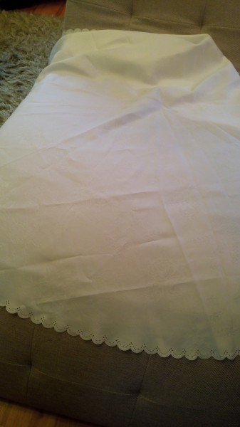 Predám guľatý biely obrus na veľký stôl priemer 155 cm. Dohoda možná.