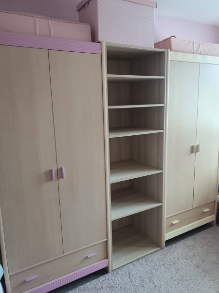 Pozostáva z: 2x skriňa (vešanie + poličky) Š: 85cm, H: 58cm, V: 198cm,