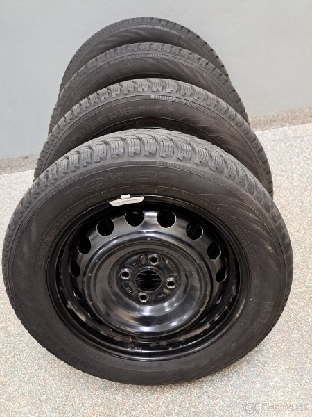 Predám zimné pneumatiky na Toyotu Yaris na oceľových diskoch. Na pneumatikách sú aj snímače tlaku a náhradné skrutky. Rozmery pneumatík sú 175/65 R15-Nokian. Pneumatiky sú málo jazdené.