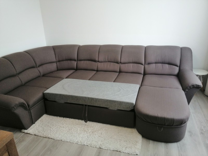 Predám zánovný rohový gauč s rozkladacim priestorom na spanie a 2 krat uloznym priestorom. Rozmery 345x230x195(cm)