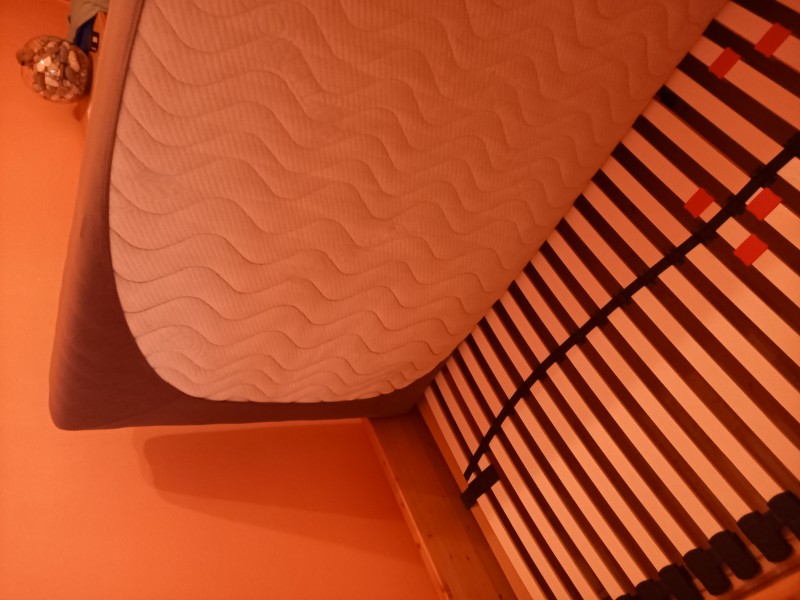 Darujem za odvoz manželskú drevenú postel/ Š 180cm, D 210cm, V 44cm/+ polohovatelne rošty+matrace