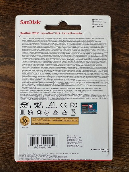 Predám novú pameťovú microsd kartu 1terabyte kapacitu SanDisk microSDXC 1TB prenosová rýchlosť 150 MB/s + SANDISK ULTRA SD ADAPTER 150 MB/S A1 CLASS 10 UHS-I