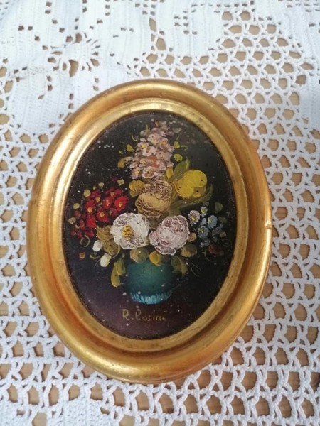 ponúkam na predaj krásny obraz od talianskeho profi maliara - R. Rosini : narodený v Mantove v roku 1924. 3 roky študoval na miestnej umeleckej škole a kvôli vypuknutiu 2. svetovej vojny nemohol pokračovať v štúdiu, ale v roku 1952 sa stal profesionálom. Odvtedy zarábal živí sa maľovaním kvetinových obrazov. Tento umelec ponúka jednoduchý a jemný štýl práce, z ktorých väčšina sú kvetinové a maľované technikou a štýlom, ktorý vyzerá, ako keby umelec maľoval dielo na prelome storočí. Je známy v Taliansku aj v zahraničí...názov - čarokrásna kytica v modrej váze...cena - 130 euro...obraz v TOP stave kvality bez akýchkoľvek poškodení...možnosť poslať poštou po platbe vopred na účet !!! + poštovné...alebo výmena za iné starožitnosti...ponúknite...uvítam osobný odber Heľpa okres Brezno...kde je ešte na výber z vyše 100 ks rôznych maľovaných obrazov slovenských - českých a svetových profi maliarov a okolo 300 kvalitných a hodnotných starožitností pre každého zberateľa...Ďakujem a prejem všetkým pekný deň...s pozdravom zberateľ Blue Angel Sedrik...