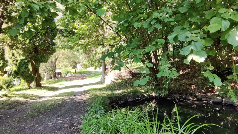 Pozemok je prevažne rovinatý a okrem priestranného domu sa na ňom nachádza maštaľ, tri garáže, jazierko a cez pozemok tečie potok.