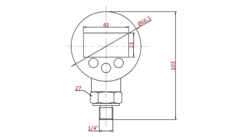 DIGITÁLNY MANOMETER DN63 VERTICAL 0 - 600 BAR - 1/4