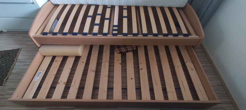 Ponukam na predaj 2xpostel v rozmeroch 90x200,s rostami a matracmi, obe su vo velmi zachovalom stave, neposkodene, s uloznym priestorom,ktory moze posluzit ako dalsie lozko, nakolko su v nich rosty + dalsie dva matrace gratis - su starsie, ale na prilezitostne prespanie navstevy posluzia. Matrace na posteliach maju potah, ktory je mozne oprat, su pevne, prikladam link vyrobcu https://www.mpo-matrace.sk/ ... rosty su nastavitelne na kg. Cena jednej postele + dalsi matrac = 115€, pripadne prikladam foto aj nastennej police, pokial by mal niekto zaujem, je to seria k posteli za +20€/ ks. Preferujem osobny odber.
