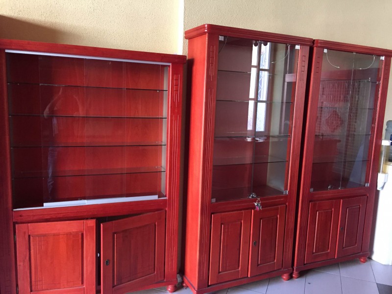 Predám nábytok z masivu, vyrobený na zákazku vo výbornom stave, kvalitná ručna práca. Nábytok bol vystavený na predajní z mobilnými telefónmi a šperkami. Možnost individuálnej úpravy a prerobenia. Predaj aj jednotlivo. Cena dohodou