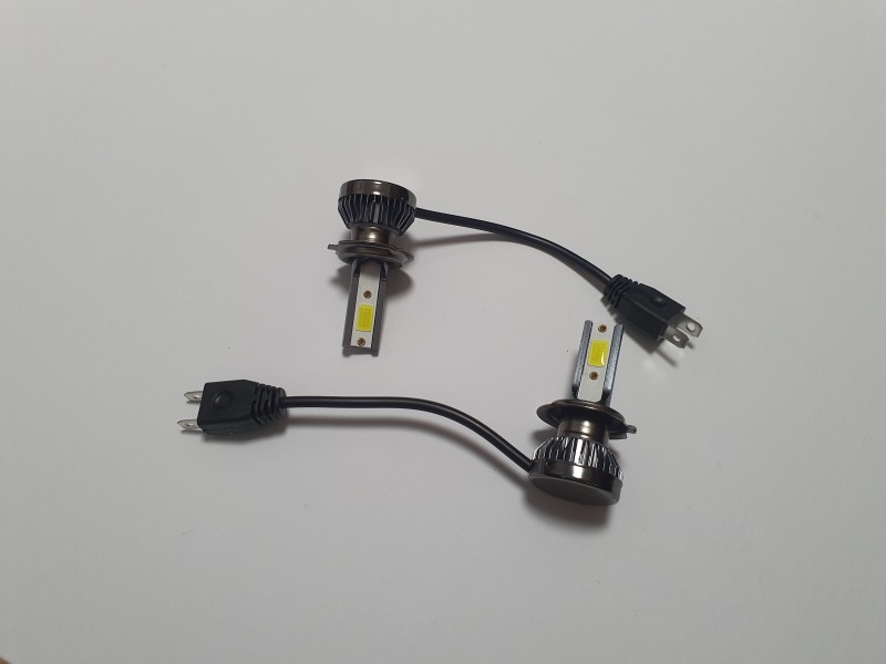 Led H7 s mini chladicom (Prva fotka),uplne najmenšia led žiarovka s chladičom na trhu(pozri rozmery na fotke)tvori ich z oboch stran 18 bodovy led chip,vykon 32w,Teplota 6000-6500K-Biela. CANBUS.Vyssia svietivost oproti ziarovke.(Vykon je mnou odmerany na zdroji,nie x-krat navyseny,vymysleny ako u 98% predajcov aby rychlo predali,premerajte si!)Bez problemov vojdu do kazdeho svetla s krytkou.Teplo sa odovzdava do chladica.Pre stretavacie aj dialkove svetla.