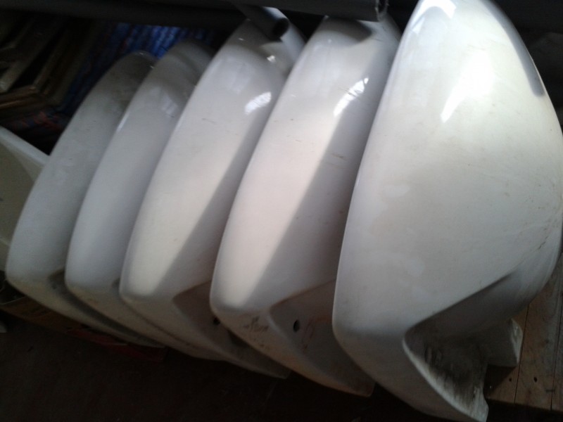 1. obr. - 10 ks umývadiel (biele) 65x47, 2 ks umývadlá svetlozelené - 8,-€/ks, pisoáre 20,-€/ks, WC 20,-€/ks, výlevky 25,-€,