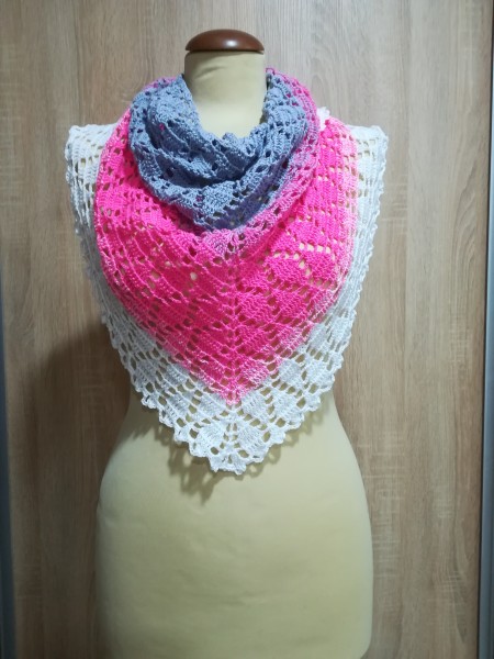Háčkovaná šatka je vyrobená z kvalitnej jemnej akrylovej priadze. Oživí každý kabát alebo top.
