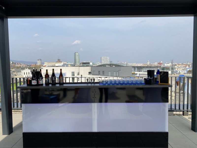 Prenosný bar, termobox na ľad, barová podložka, gastro nádoba, barmanská lyžička, kliešte na ľad, shaker, bodec na lístky, barmanské nalievatko, odmerka na alkohol, drtítko na ľad, otvárač na víno, termoizolačná nádoba na ľad 8L, vratný pohár 0,5L, vitrínová chladnička veľká, vitrínová chladnička malá, nádoba na limonádu a umývačka pohárov Spülboy na prenájom.