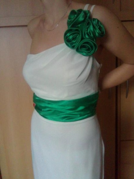 Predám skvelé šaty veľkosť 36(skôr 38)!, antický štýl, pohodlné, netreba podprsenku-vystužené. Biele s maľovanými kvetmi, ramienka na boku s ružami zo saténu, v ktorým sú zasadené strieborné kamienky, vzadu idú 3 ramienka krížom cez chrbát. Cena iba zlomková 60€ (pôvodná 200€). V prípade rýchleho jednania sa viem dohodnúť. V prípade záujmu premeriam, pošlem ďalšie foto.... :) možná dohoda