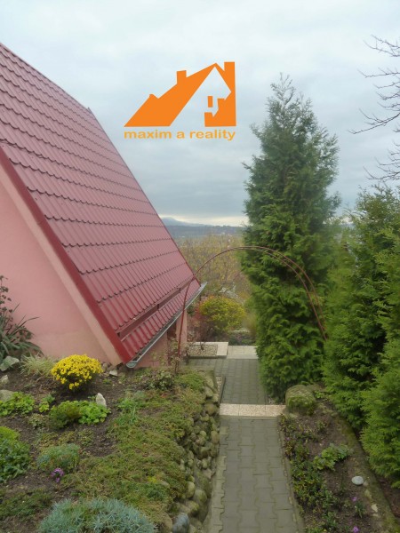 Ku chate patrí pozemok o výmere cca 600 m2 - okrasná záhrada a veľké, štrkom vysypané súkromné parkovisko.