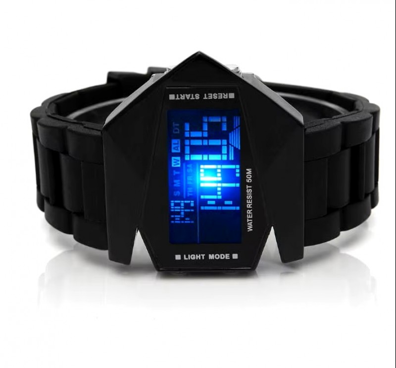 Predám digitálne hodinky s podsvieteným LED displejom netradičného futuristického tvaru lietadla.