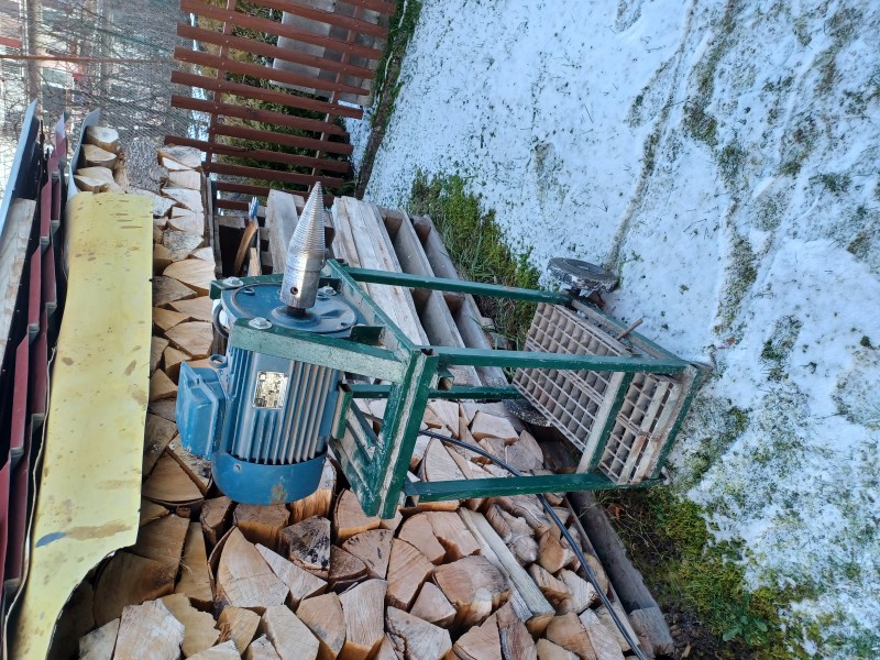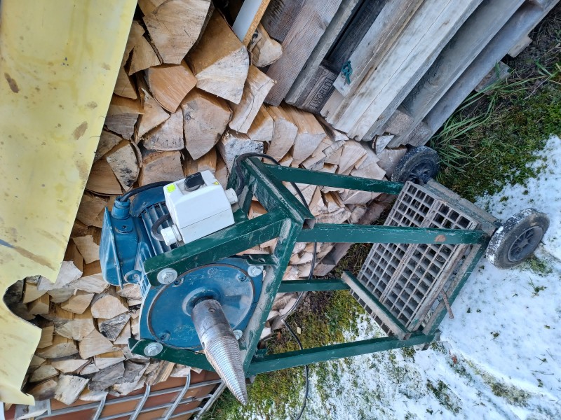 Predám kuželovú štiepačku na drevo s 3 kW motorom, 400 V, 950 ot./min., reverzný vypínač, el. kábel 7 m.