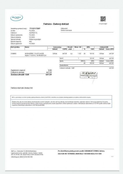 Predám Notebook Aspire A715-42G