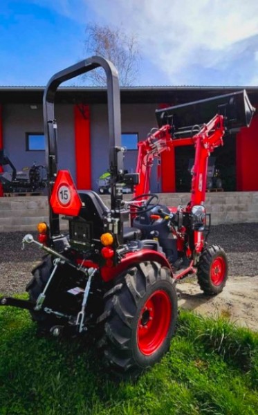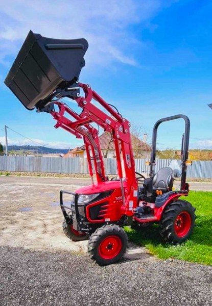 Traktor TYM T255 s čelným nakladačom a medzinápravovou kosou 150cm