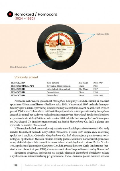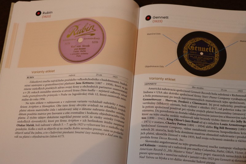 Hlavnú časť publikácie tvorí unikátny, doteraz neexistujúci, súborný súpis všetkých doteraz identifikovaných slovenských gramofónových snímok nahratých v rokoch 1900 až 1946. Okrem súpisu nahrávok prináša knižka pohľad do histórie nahrávania zvukových záznamov vo svete a na Slovensku, mapuje vývoj gramofónového priemyslu u nás v časoch Rakúsko-Uhorska a po vzniku Československa a v bohato ilustrovanom chronologickom prehľade predstavuje všetky gramofónové značky aj s ich etiketami, na ktorých sa v tomto období objavil slovenský repertoár.