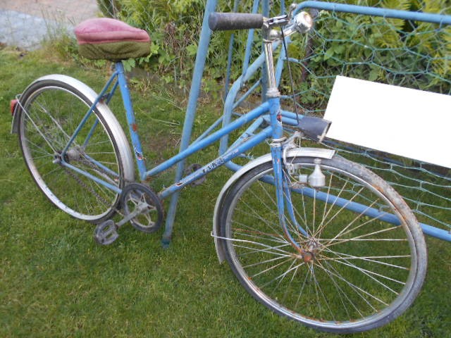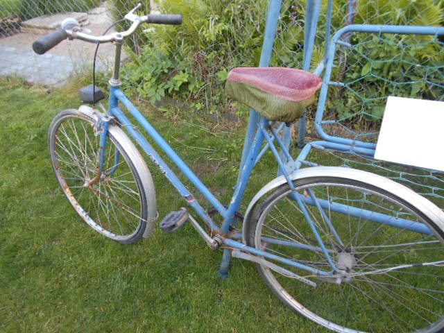 Predám starší dámsky bicykel Eska, modrá, kolesá 26, páčkové brzdy (predná aj zadná). Dobrý stav. Praktický stojan, bez prehadzovačky. Odrazky na kolesách, hliníkové blatníky, má dynamo a svetlo. Volať po 0945448483. Pevná cena 10€. Neposielam kuriérom. Osobný odber v N.Z. Len volať. Volať do 18:00.