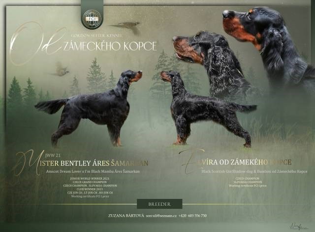 CHS Od Zámeckého kopce zadá štěňátka gordonsetrů, s průkazem původu, narozených 11.5.2025. Narozeno 6 fenek a 3 pejsci. K odběru od poloviny července, plně očkovaná, odčervená, socializovaná. Nezávazná návštěva vítána. Info o rodičích viz. obrázek.