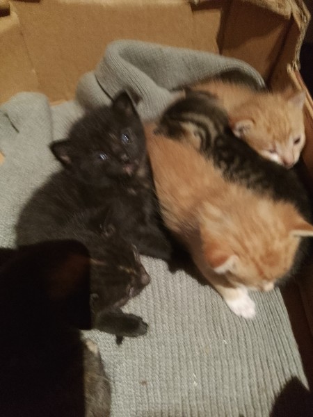 Dve ryšavky jedno úplne čierne, druhé čierne s ryšavými fliačkami a jedno tigrovité.