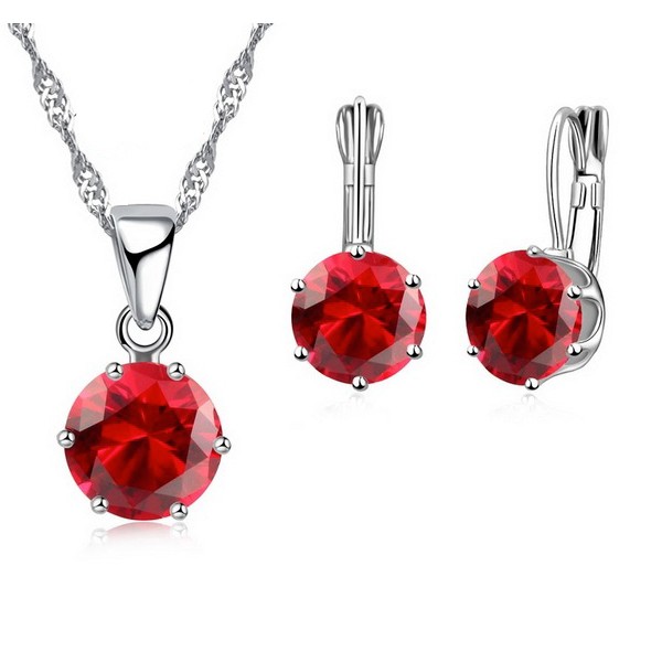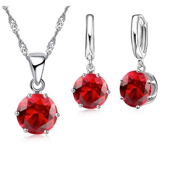 Elegantný strieborný set s červeným zirkónom