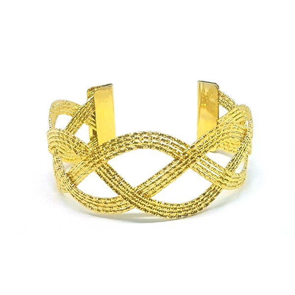 Štýlový hrubý a prepletaný náramok v zlatej farbe. Tento elegantný náramok sa hodí na letné dni, keď môžete ukázať svoje opálené ruky a na každej párty Vám ho budú závidieť. Náramok je trendový a nasadzuje sa zboku ruky, netreba ho navliekať cez prsty. Má nastaviteľnú veľkosť, preto je vhodný pre každú ženu.