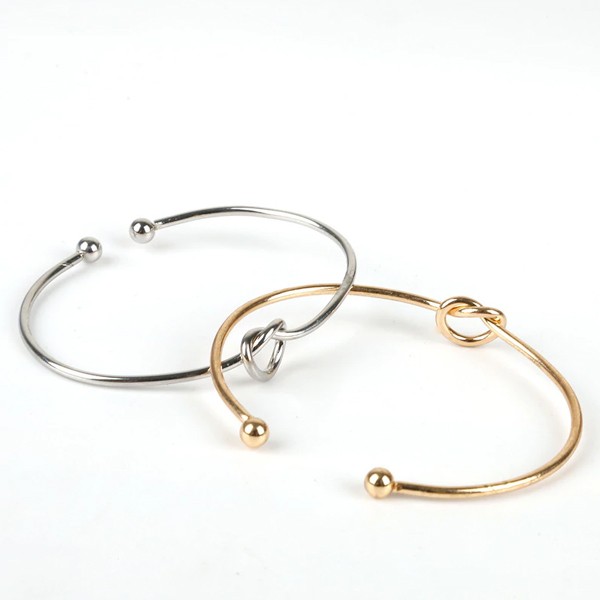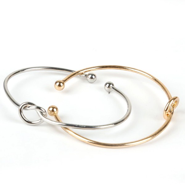 Štýlový set dvoch náramkov s uzlom, ktorý môžete nosiť spolu, alebo aj samostatne. Náramky sú v zlatej a v striebornej farbe, a na každom je v strede uzol. Tento elegantný set s dvoma náramkami pôsobí veľmi luxusne a prispôsobí sa na každú ruku.