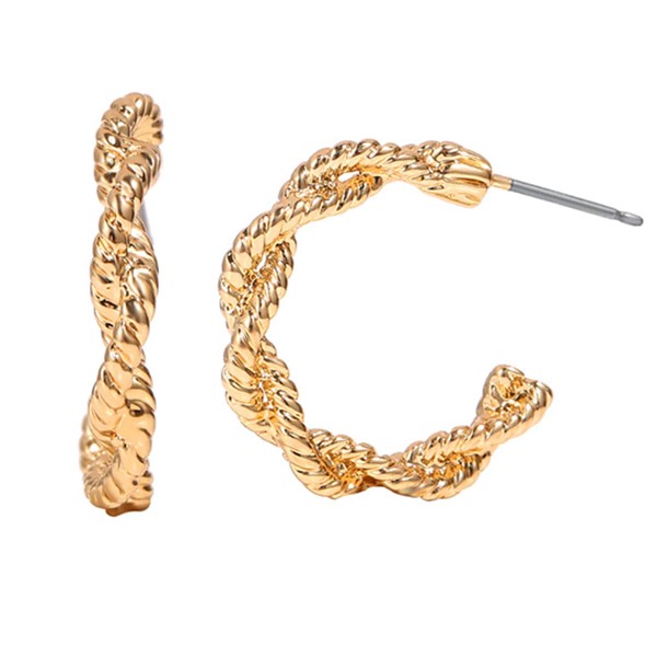 Elegantné polkruhové náušnice so zakrúteným vzorom v zlatej farbe. Tieto nádherné náušnice s priemerom 2 cm, majú krásny dizajn. Náušnice sú nádherným doplnkom ku každému outfitu a hodia sa na každodenné nosenie.