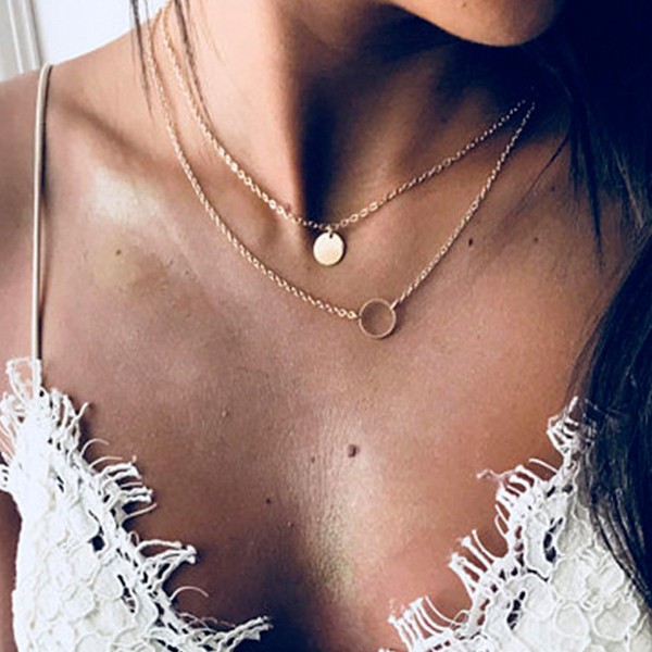 Nádherná dvojdielna retiazka s príveskami krúžkom a kolieskom v zlatej farbe. Tento elegantný doplnok skrášli každý Váš outfit a budete vyzerať jedinečne. Retiazky majú krásny dizajn a pekne sa dopĺňajú. Retiazky majú nastaviteľnú veľkosť.