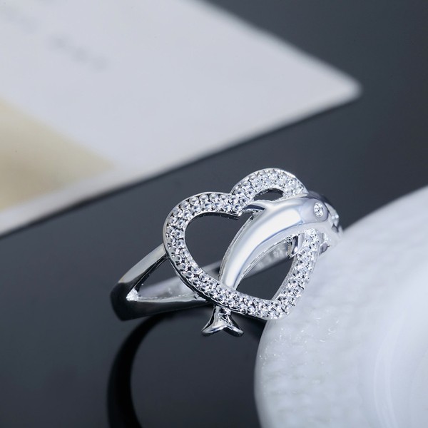 Tento luxusný postriebrený prsteň má v strede krásnu ozdobu, a to delfína a veľké srdce. Šperk v podobe prsteňa je vhodný ako darček pre milovanú ženu k sviatku. Krásny prstienok i napriek nízkej cene je veľmi elegantný a pristane každej žene s veľkosťou prsta 8, to je 57 mm.